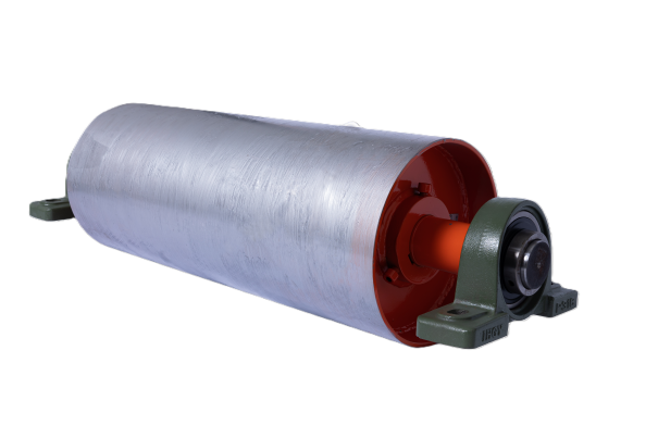 Mae'r corff drwm yn cael ei rolio o blatiau dur carbon o ansawdd uchel fel Q235B, ac mae'r siafft a'r corff drwm wedi'u cysylltu gan ganolbwynt neu fushing. Mae'r Bearings yn mabwysiadu brandiau o fri rhyngwladol fel NSK, FAG, SKF, ac ati i sicrhau y gall y rholer wrthsefyll grym tynnu digon cryf ar gludwyr pellter hir.