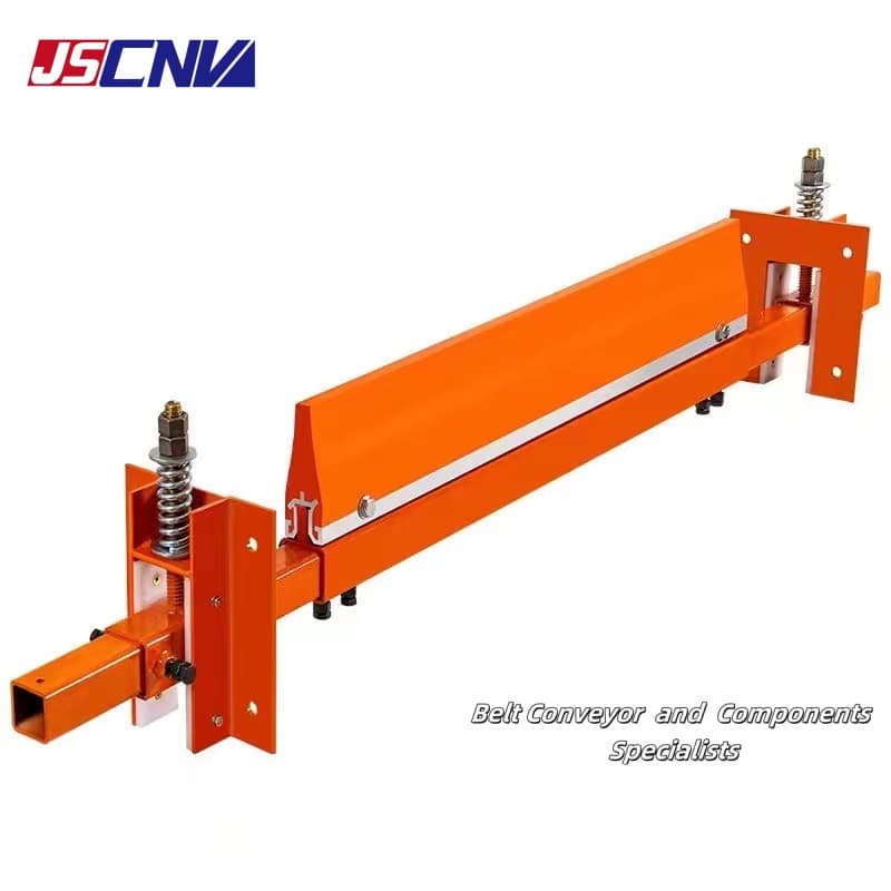 Mae glanhawr un llinell ar gyfer glanhau'r gwregys dychwelyd. Fe'i defnyddir yn bennaf o flaen y pwli plygu cefn ac o flaen dyfais tensiwn fertigol trwm y cludwr gwregys. Gellir ei ddefnyddio'n arbennig i lanhau rhan wag y gwregys rhedeg dwy ffordd. Mae ganddo nodweddion ymwrthedd asid ac alcali, gwrth-fflam a gwrthstatig, ymwrthedd gwisgo uchel, ac nid yw'n niweidio'r gwregys. Mae'r llafn wedi'i wneud o polywrethan cryfder uchel, mae'r dyluniad siâp V yn sicrhau glendid y gwregys, ac mae'r dyluniad disgyrchiant awtomatig yn sicrhau iawndal awtomatig pan fydd y llafn yn gwisgo.